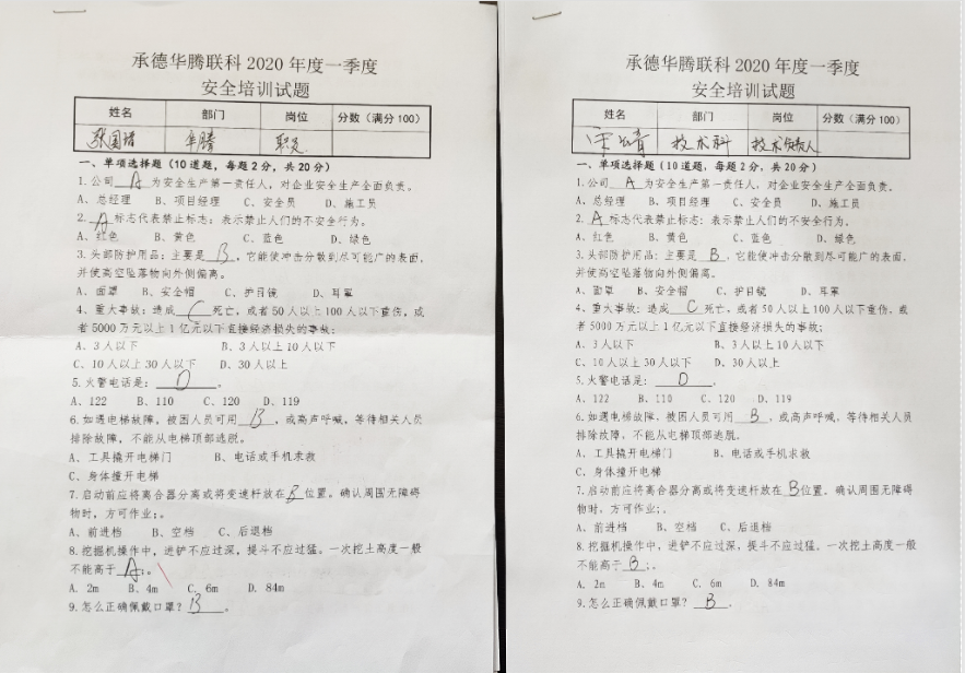 為增強(qiáng)華騰聯(lián)科公司員工安全意識(shí),高效有序推進(jìn)疫情防控和復(fù)工復(fù)產(chǎn)工作,公司安全科牽頭制定了《項(xiàng)目管理安全手冊(cè)》、《公司年度安全計(jì)劃》、《企業(yè)安全生產(chǎn)應(yīng)急預(yù)案》、《施工現(xiàn)場(chǎng)安全生產(chǎn)事故應(yīng)急救援預(yù)案》、《防疫安全責(zé)任書(shū)》、《新型冠狀病毒肺炎防疫應(yīng)急處置方案》、《防疫專(zhuān)項(xiàng)承諾書(shū)》和復(fù)工審批流程,并通過(guò)線(xiàn)上、線(xiàn)下培訓(xùn)和考試的方式,提升了員工安全防范意識(shí)和安全管理能力,為集團(tuán)公司“質(zhì)量提升年”活動(dòng)的安全質(zhì)量提升層面提供保障。